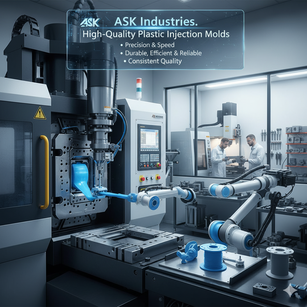At ASK Industries, we deliver end-to-end plastic injection molding solutions with precision, speed, and sustainability. From concept to delivery, our expertise ensures products that are reliable, cost-effective, and eco-friendly.
